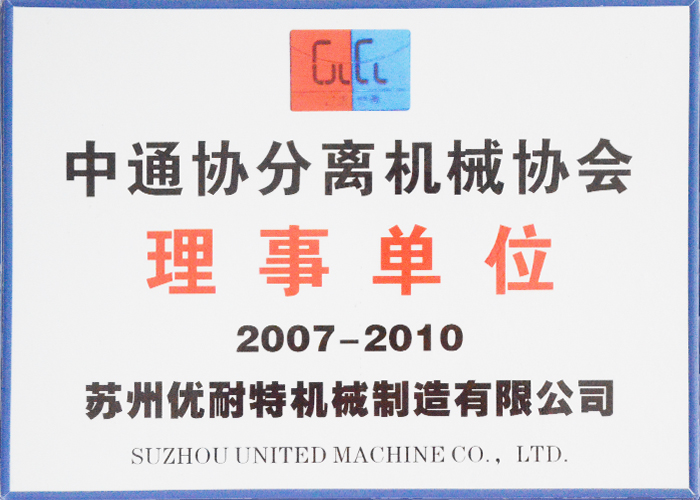 中通協分離機械(xiè)協會理事(shì)單位-榮譽資質-臥螺離(lí)心(xīn)機-分離機(jī)-離心機廠家-蘇州優(yōu)耐特機械製造有限公(gōng)司(sī)